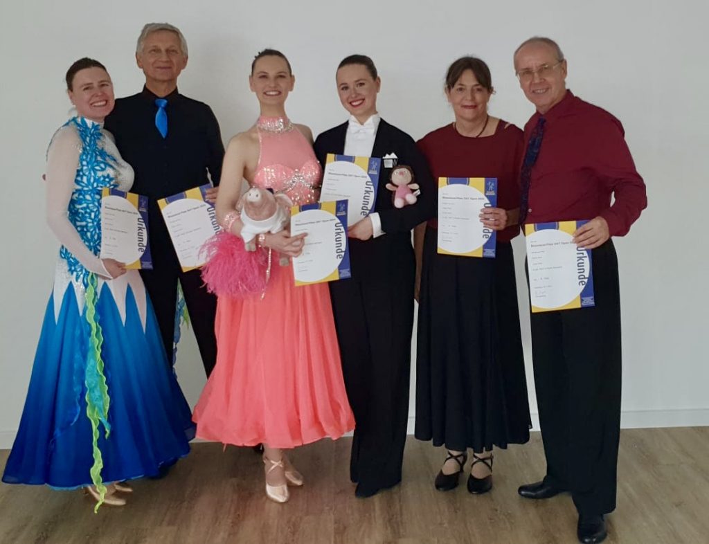 Hier gingen die Paare Petra und Lutz Richter, Esther und Volker Zausch sowie Lea Zausch und Felicitas Leister an den Start. Zusammen mit zwei weiteren Paare des TTC stellten sie die Mannschaft für das Freiburger Team. Insgesamt gingen drei Mannschaften mit insgesamt 14 Paaren an den Start. Jedes Paar tanzt zweimal 5 Tänze wahlweise aus der Standard bzw. Latein Sektion oder Discofox. Jeweils die drei besten Wertungen einer Tanzrunde fließen in die Mannschaftswertung ein. Am Ende gewinnt dann die Mannschaft mit dem besten Ergebnis. Diese Ehre wurde dem Freiburger Team zuteil.