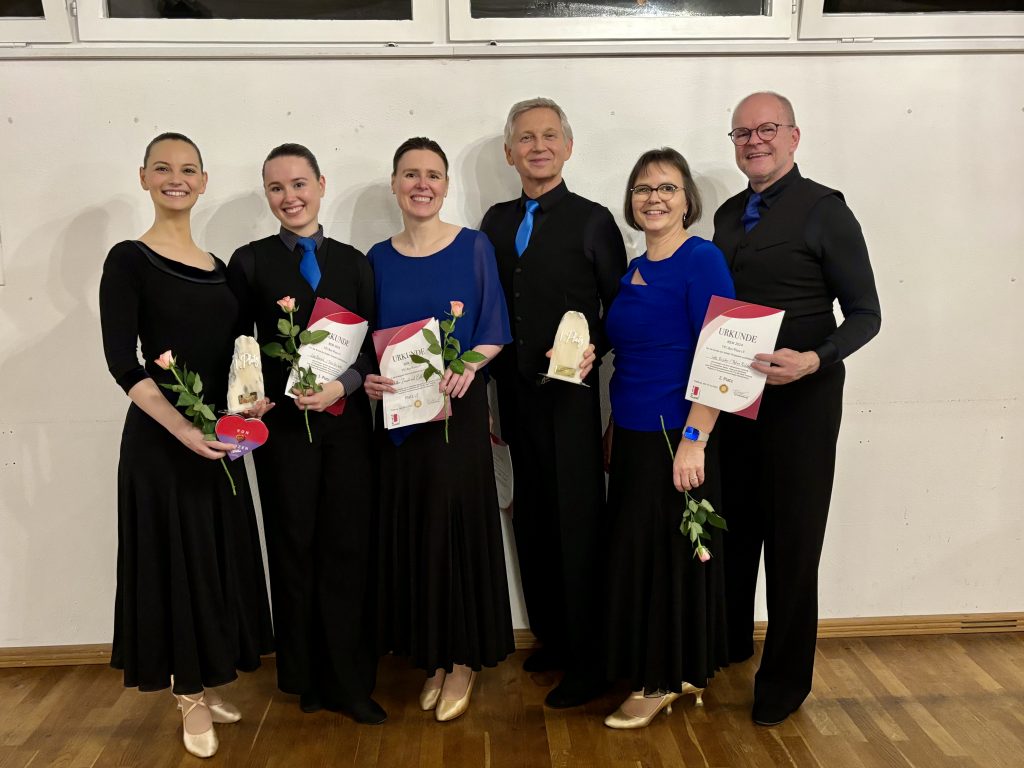 Als Zugabe und „Belohnung“ dürfen dann die sechs besten Paare noch eine Standard Finale über drei Tänze bestreiten. Alle drei an den Start gegangenen Paaren gelang das Meisterstück sich für dieses Finale zu qualifizieren. Und nicht genug: Lea und Feli gewannen das Turnier mit allen Einsen. Lutz und Petra belegen gleich dahinter Platz zwei und Volker und Esther beanspruchten Platz fünf für sich.